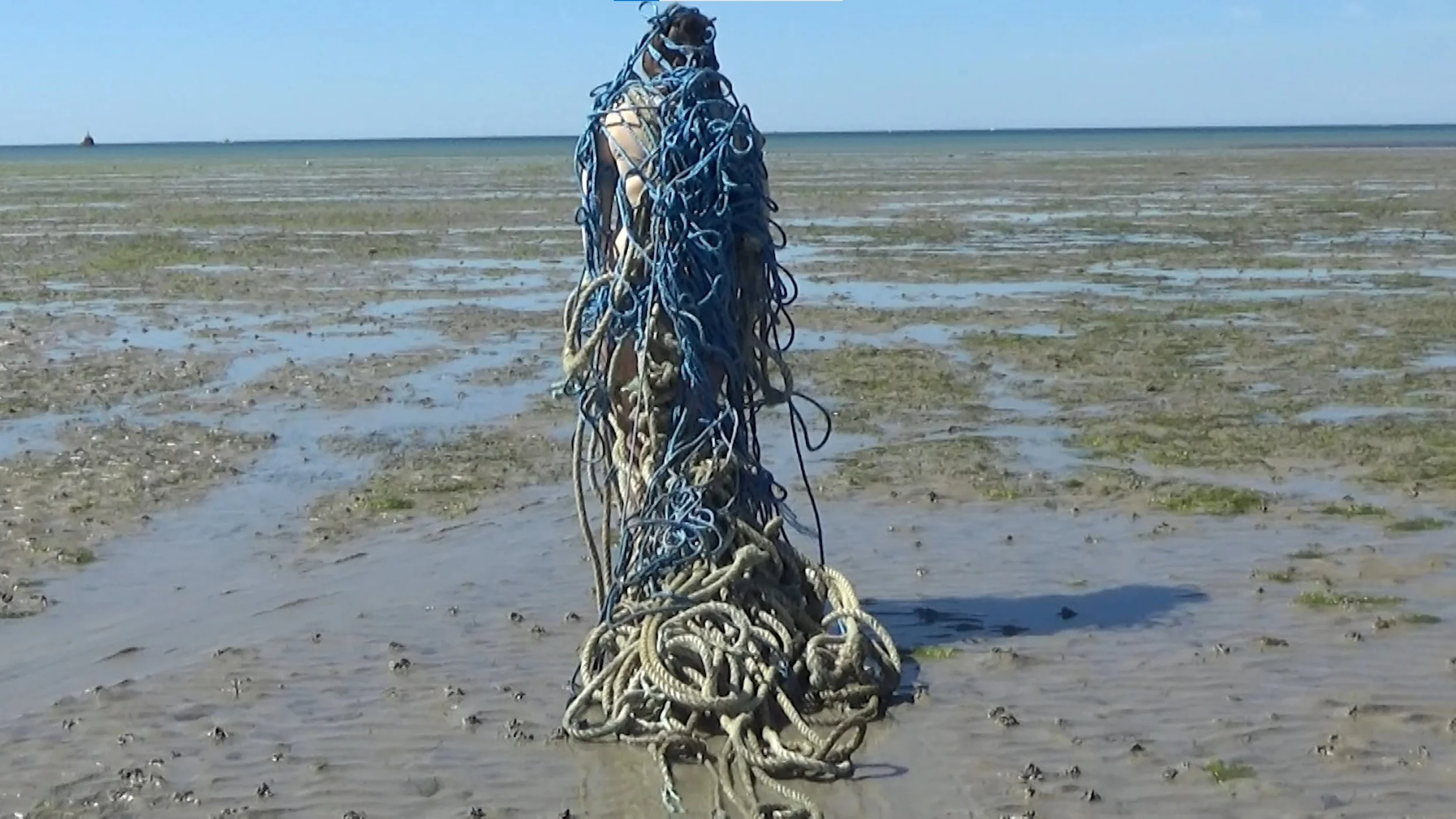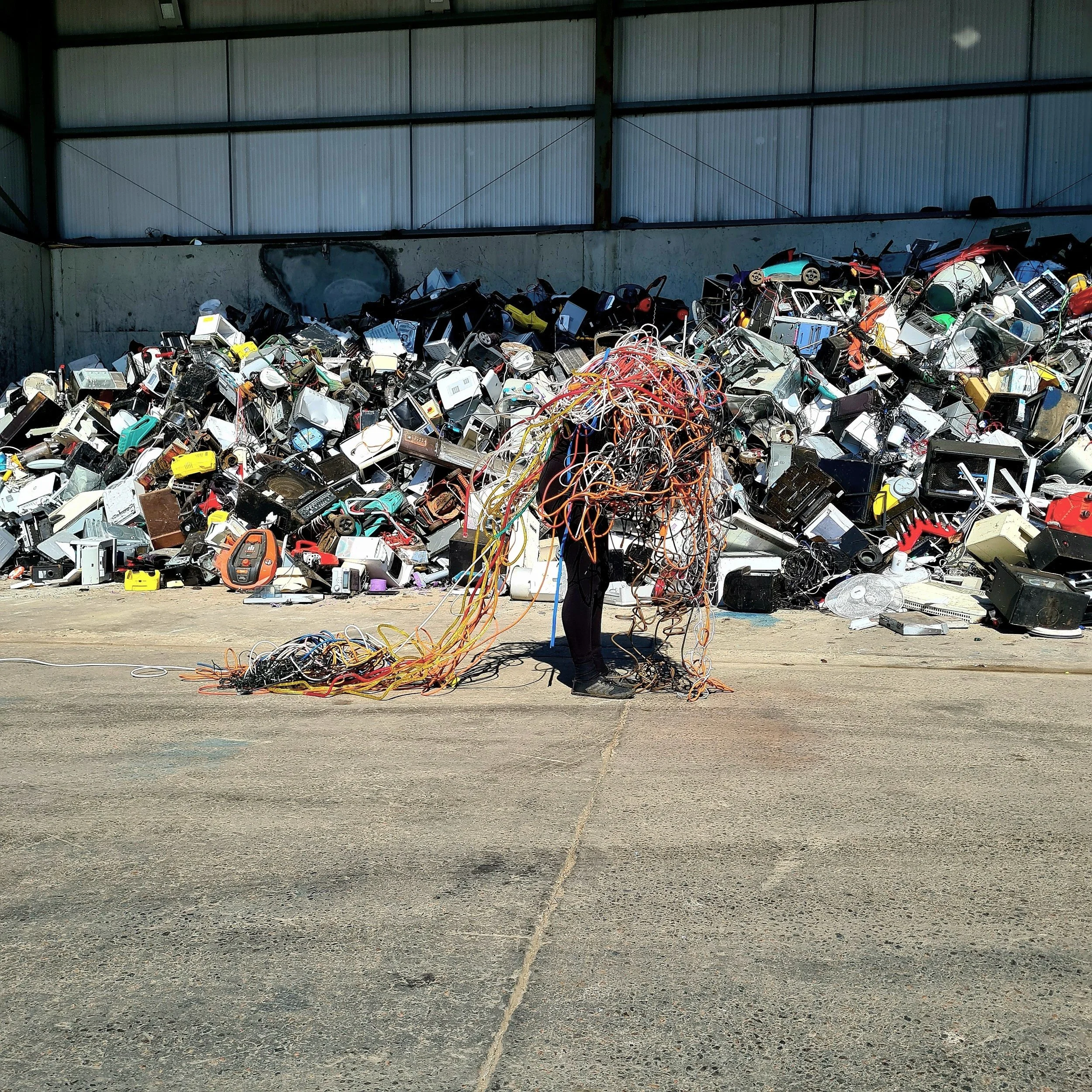 The Burden explores the physical and mental weight we carry thinking about our collective and individual waste. Filmed both on Jersey's shores, in a natural environment and at the Recycling Centre with the back-drop of a huge pile of electrical waste that had been discarded. The performances invite you to contemplate your physical and inseparable connection to this waste and the burden and responsibility we each carry. The live performance with electrical waste piled onto her body is a dark and comic performance exploring the burden of our waste.